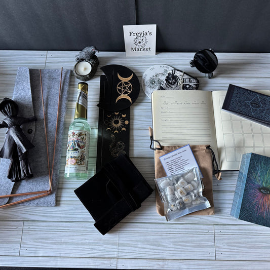 Chelsea is the owner and curator of Freyja's Market (hand-selecting each and every creator), and she also has a stall of her own in the market. Chelsea finds magic in creating. Her flagship product was Freyja's Magic Scoops — mystery pulls filled with witchy treasures. From there came crystal Advent calendars for the holiday season, and now, her latest venture: the Words of Magic clothing line.
